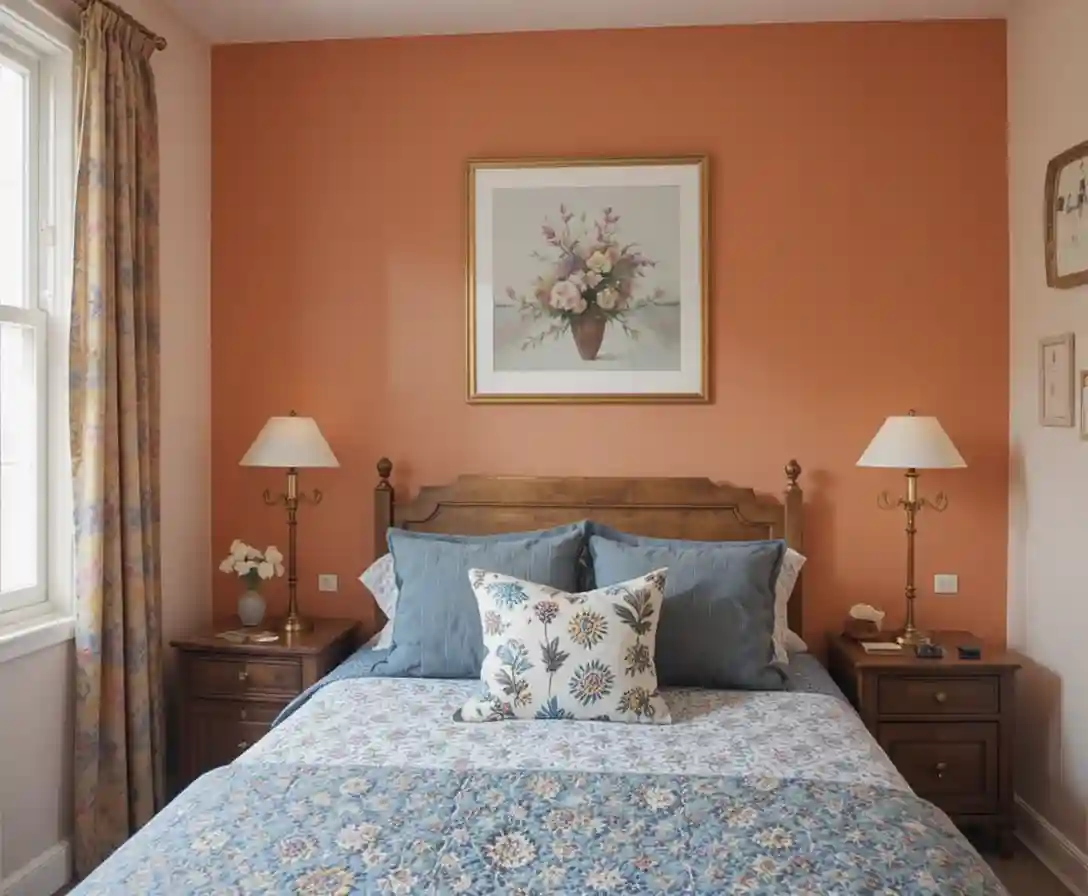 Pro tip: Accessorize with minimal decor—like a small plant or framed art—to maintain focus on the feature wall without cluttering the room.